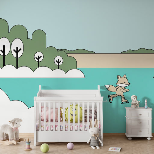 KidsWallVezměte své dítě do kouzelného světa s tímto papírovým tapetou pro děti, který zobrazuje roztomilého bruslařského lišáka klouzajícího na kluzišti p...