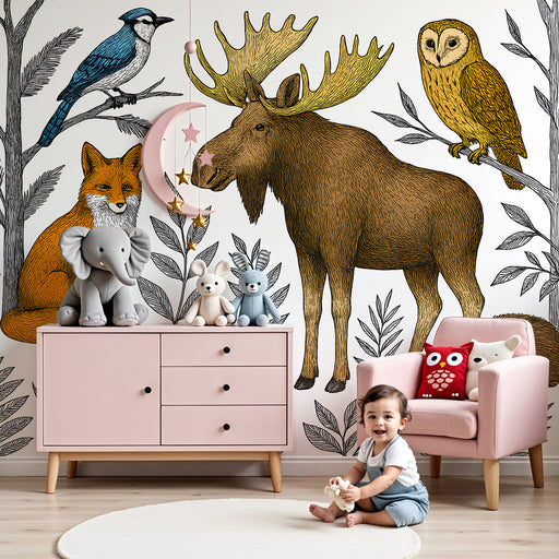 KidsWallProměňte pokoj svého dítěte v opravdový kousek přírody s tímto papírovým tapetou pro děti, který zobrazuje fascinující zvířata lesa. Královský jele...