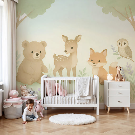 Zobrazit celý detailKinderzimmer Tapete | Waldtiere und sanfte Natur