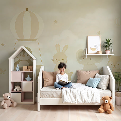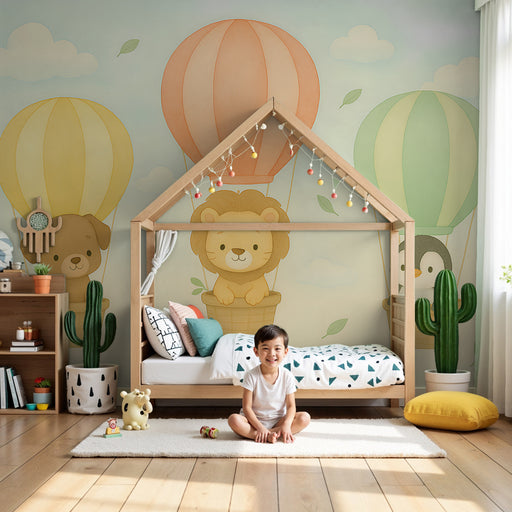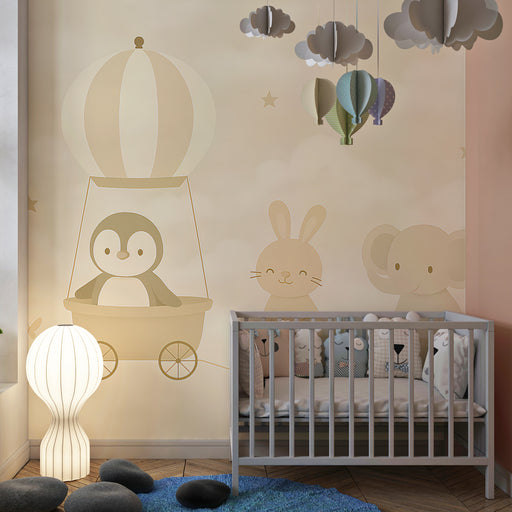 KidsWallNastupte na kouzelnou cestu s tímto tapetou do dětského pokoje, která zobrazuje roztomilá zvířata stoupající do vzduchu ve svých horkovzdušných bal...