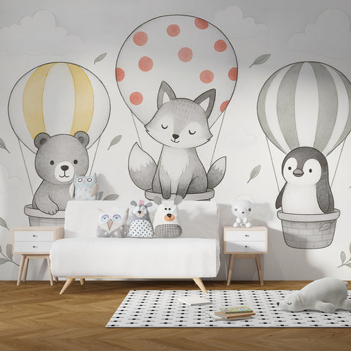 KidsWallPřidejte do dětského pokoje dotek kouzla a něhy s tímto tapetou pro děti, která zobrazuje zvířata ve vzducholodi. Medvěd, liška a tučňák cestují kl...