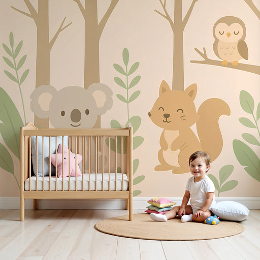 KidsWallProměňte pokoj svého dítěte v útočiště klidu s tímto papírovým tapetou pro děti, která zobrazuje radostnou skupinu lesních zvířat. Tento kouzelný v...