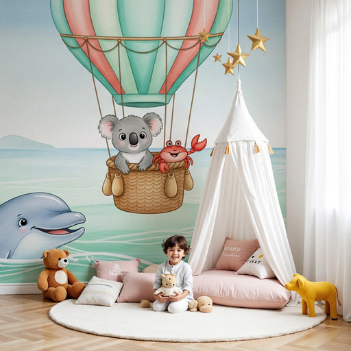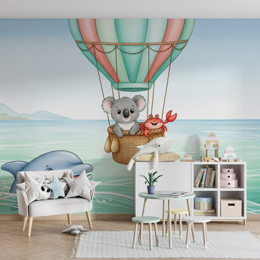 KidsWallNastupte na dobrodružství plné magie s tímto tapetou pro děti, která zobrazuje veselý výlet na horkovzdušném balónu. Rozkošný koala a zábavný krab ...