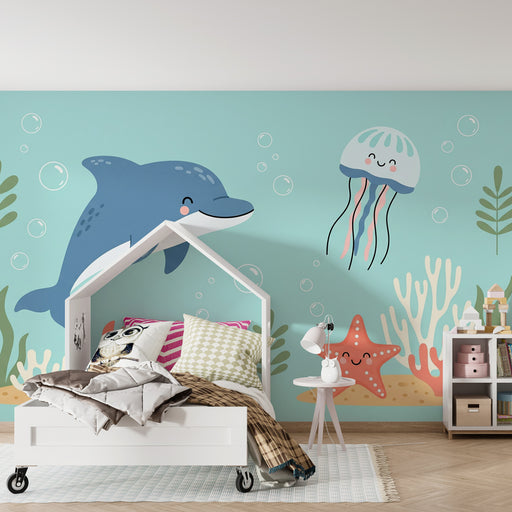 KidsWallPonořte se do fascinujícího světa oceánu s tímto tapetou pro děti, která zobrazuje roztomilé mořské tvory. Hrající delfín, roztomilá želva, usmíva...