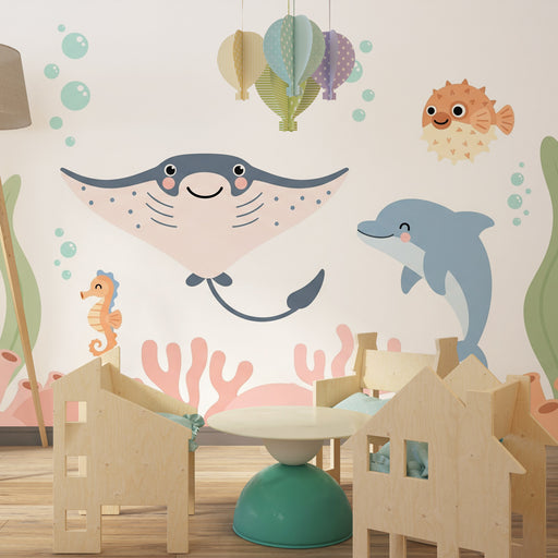 KidsWallProměňte pokoj svého dítěte v kouzelný vodní svět s tímto tapetou pro děti, která zobrazuje radostnou mořskou scénu. plave elegantně vedle zábavné...
