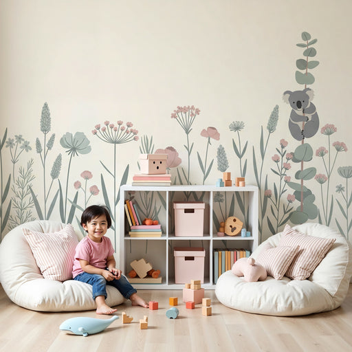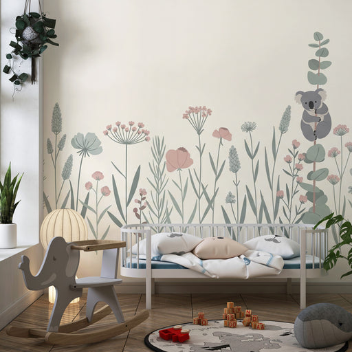 KidsWallPřineste do dětského pokoje dotek přírody a klidu s tímto nátěrovou tapetou, která zobrazuje roztomilého koalu sedícího mezi jemnými květinami. Des...