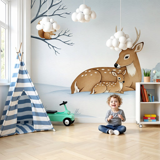 KidsWallProměňte pokoj vašeho miminka v klidné místo s tímto papírovou tapetou pro děti, která zobrazuje roztomilého laně vystupujícího z v zasněženém lese...