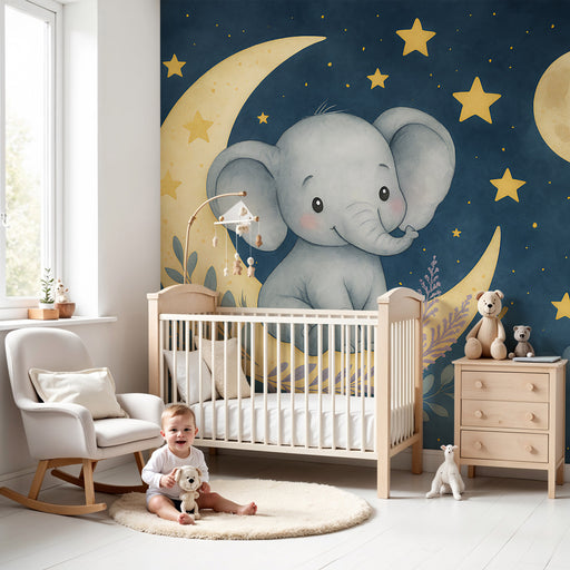 KidsWallPonořte svého malého do světa jemnosti a snů s tímto tapetou do dětského pokoje. Rozkošný slon, klidně sedící na půlměsíci, osvětluje noční oblohu ...