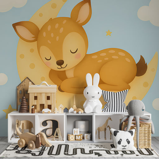 KidsWallVytvořte v dětském pokoji pohádkový svět s touto tapetou pro dětský pokoj, která zobrazuje roztomilého laně osvětlené jemným zářením měsíce. Obklop...
