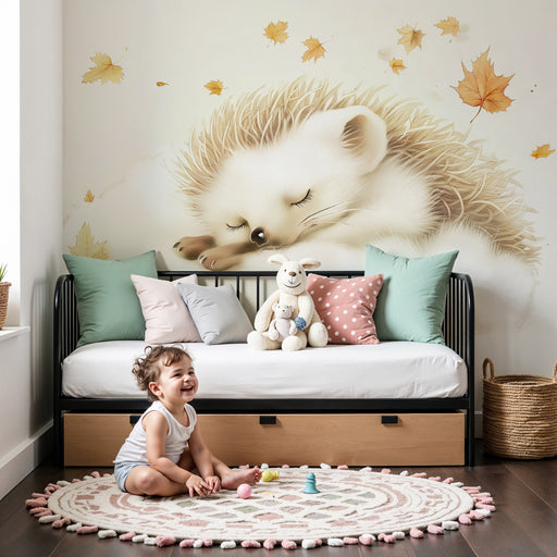 KidsWallProměňte pokoj vašeho dítěte v útulný prostor s tímto papírovým tapetou pro děti, která zobrazuje roztomilého ježka obklopeného jemným listím. Tent...