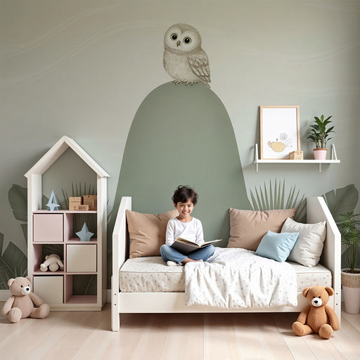 KidsWallProměňte pokoj vašeho miminka v útulný prostor s tímto tapetou pro děti, která zobrazuje roztomilého sovu na mírném kopci. Tento uklidňující design...
