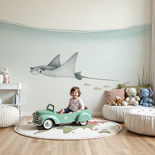 KidsWallPonořte se do fascinujícího světa mořských hlubin s tímto tapetou pro děti, která zobrazuje majestátní mantu plující jemně modrými vodami. Obklopen...