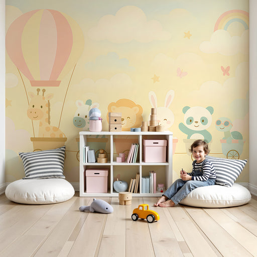 KidsWallPřeměňte pokoj vašeho dítěte v místo něhy s tímto tapetou pro děti zobrazující roztomilá zvířata. Na měkkém oblaku odpočívají lenochod, koala a mal...