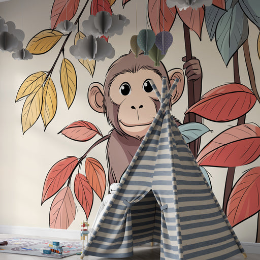 KidsWallProměňte pokoj vašeho dítěte v hravý a přívětivý svět s tímto papírovým tapetou pro děti, které zobrazuje roztomilého opice mezi barevnými listy. T...