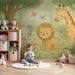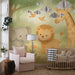 Proměňte pokoj svého dítěte v opravdový útočiště klidu s tímto tapetou pro děti, která zobrazuje okouzlující scénu savany. Zvědavý slon, přátelský lev a majestátní žirafa se nacházejí uprostřed bujné vegetace a barevných květů, vytvářejíce radostnou a přívětivou atmosféru.