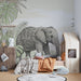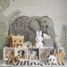 Ponořte se do fascinujícího světa džungle s tímto dětským tapetou, která zobrazuje majestátního slona pohybujícího se uprostřed bujné vegetace. Jeho jemné odstíny šedi se dokonale snoubí s bujnými listy, vytvářejíce klidnou a uklidňující atmosféru.