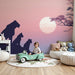 Ponořte se do divokého světa s tímto tapetou do dětského pokoje, která zobrazuje majestátní scénu lvů při západu slunce. Panorama je zahaleno do jemných odstínů růžové a fialové, vytvářející klidnou a uklidňující atmosféru pro vašeho malého dobrodruha.
