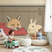 Transformujte prostor vašeho dítěte tímto teplým navlhčeným tapetou, která zobrazuje klidného lišáka zabalujícího se do deky a pozorného králíka po jeho boku. Tento jemný a uklidňující obraz vytváří přátelskou a útulnou atmosféru v místnosti, ideální pro podporu dětské fantazie.