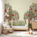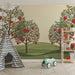 Dětská pokojová tapeta | Ovocné stromy s pestrobarevnými ptáky