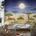 Přírodní prvky jako majestátní stromy a bujná vegetace dodávají této hravé scéně dotek realismu. Každá postava je pečlivě nakreslena tak, aby vytvořila dojem něhy a tepla, proměňující pokoj v kouzelný svět. Tento poutavý motiv láká k dobrodružství a objevování.