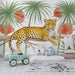 Jemné a přírodní odstíny leoparda harmonicky ladí s jasnými zelenými listy, přinášejíce uklidňující atmosféru do pokoje. Každý detail je pečlivě nakreslen, aby zachytil divokou a exotickou krásu přírody. Tento ponořující se dekor je ideální k probuzení fantazie vašeho dítěte.