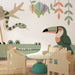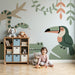 Přeneste kouzlo džungle do dětského pokoje s tímto papírovým tapetou pro děti plným barevných a veselých zvířat. Usmívající se krokodýl, ohnivý tukan a hravý had se prolínají s bujnou vegetací, vytvářejíce hravý a teplý svět.