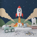 Živé odstíny červené a bílé rakety kontrastují s jemnými tóny kopců a hvězdné oblohy, vytvářejí dynamickou a inspirativní atmosféru. Kouřové a ohnivé vzory, které unikají z rakety, dodávají dotek realismu tomuto pohádkovému prostředí, probuďte představivost vašeho malého průzkumníka.