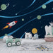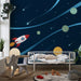 Tapeta dětského pokoje | Vesmírné dobrodružství s raketou a astronautem
