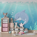 Nastupte na jedinečnou mořskou dobrodružství s tímto tapetou pro děti, která zobrazuje roztomilého delfína plavajícího v tyrkysových vodách. Obklopený vodní vegetací v pastelových odstínech tento uklidňující design láká k objevování podmořského světa.