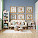 Přidejte do dětského pokoje šarmantní dotek s naší dětskou tapetou s motivem zvířat. Tento design obsahuje roztomilé ilustrace králíků, psů a medvědů, každý rámovaný v teplém a přívětivém stylu.