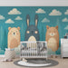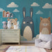 Tento papírový tapet s motivem zvířat zobrazuje usměvavého medvěda, králíka a kočku v radostném prostředí. Skvělý pro dětský pokoj, přidává do jakéhokoli prostoru šarm a zábavu.