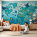 Tento tapeta s mapou oceánu je ideální volbou pro proměnu jakéhokoli prostoru v živý a vzdělávací obraz. Mapa zobrazuje svět s animovaným mořským motivem, včetně majestátních velryb, barevných ryb a živých korálů.