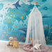 Modré tóny a různorodá podmořská fauna vytvářejí uklidňující a poutavou atmosféru, která je ideální pro dětský pokoj nebo vzdělávací prostor. Podrobný design láká k objevování a poznávání a zároveň přidává umělecký dotek do vašeho interiéru.