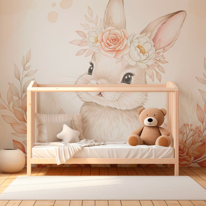 Børneværelse tapet | Blid kanin med blomsterkrone