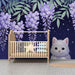 Forvandle dit barns værelse til en oase af fred med denne børnetapet, der viser en sød killing, der krammer under blomstrende blåregn. I en natlig atmosfære falder de lilla blomsterklaser forsigtigt og skaber en fortryllende dekoration, der stimulerer fantasien.