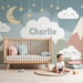 Forvandl dit babys værelse til en fortryllende verden med denne baby tapet der viser blide bjerge og smilende skyer. I en beroligende indretning tilføjer en stjernehimmel og en smilende måne en magisk touch, der skaber en blid og trøstende atmosfære.
