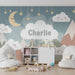 Børneværelse tapet | Bløde bjerge og smilende skyer under en stjernehimmel