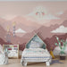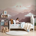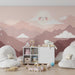 Børneværelse tapet | Lyserøde pastelfarvede bjerge og stjernehimmel