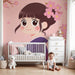 Papier peint chambre enfant | Fleurs de cerisier et kimono violet