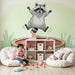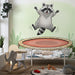 Pryd dit barns værelse med denne børnetapet, der viser en glad vaskebjørn i fuld spring på en trampolin. Denne livlige og dynamiske illustration tilføjer et legende og sjovt touch til legespacet.