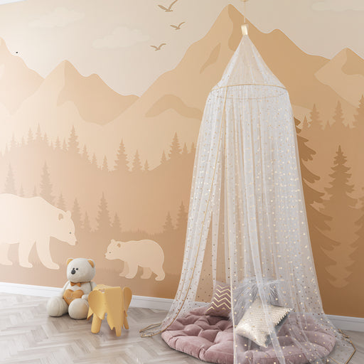 Vis alle detaljerBørneværelse tapet | Bjørne og fredelig natur