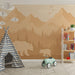 Transformér dit barns værelse med denne naturinspirerede tapet, hvor en majestætisk bjørn og dens unge trives i et fortryllende landskab. De blide beige og karamel nuancer fremkalder varmen fra en skov på en bjergbaggrund og skaber en rolig og trøstende atmosfære.