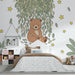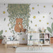 Forvandl dit barns værelse til en hyggelig oase med denne charmerende babytapet, der viser en sød bjørn, der sidder fredeligt under frodigt løv. Omgivet af skinnende gyldne stjerner skaber denne bjørn en blid og beroligende atmosfære, perfekt til søvn og drømme.