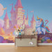 Børneværelse tapet | Farverig enhjørning foran et eventyrligt slot