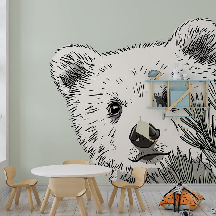 Børneværelse tapet | Nysgerrig bjørn i naturen