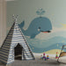 Transformér dit barns værelse til en fortryllende havverden med denne børneværelse tapet, der viser en sød hval. Denne glade skabning svømmer fredeligt i rolige farvande og sprøjter vand under en stjerneklar himmel, hvilket skaber en drømmende og beroligende atmosfære.