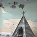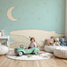 Dette børneværelse tapet passer perfekt sammen med lyse træmøbler og tilbehør i naturlige materialer, og skaber en hyggelig rede, hvor hver nat bliver til et eventyr under stjernerne.