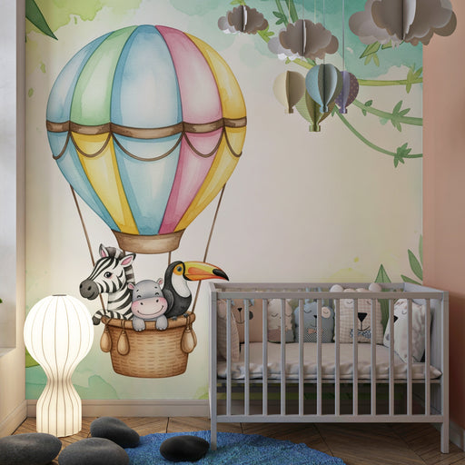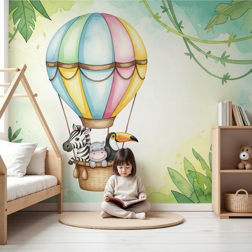 KidsWallTag med på et farverigt eventyr med denne børnetapet, der viser en glad luftballon, der transporterer søde dyr. I en livlig atmosfære tager en zebr...