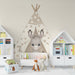 De store tropiske blade omkring tipien tilføjer en naturlig og beroligende stemning, der skaber et miljø, der er ideelt til afslapning og udforskning. De blide og neutrale farver i designet fremmer en rolig atmosfære, der er perfekt til søvn og leg.