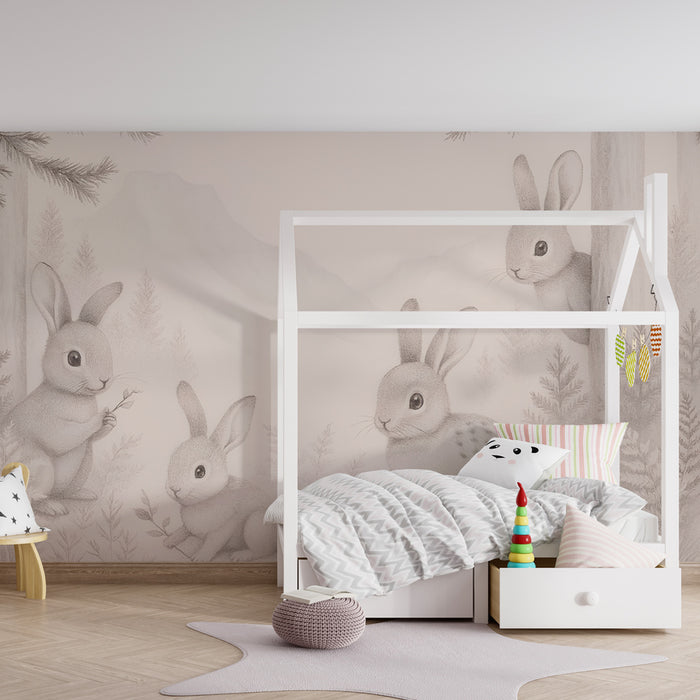 Transformér dit barns værelse med denne børnetapet, der viser søde kaniner, der leger i en fredelig skov. Midt i det forfine landskab bringer disse delikate kaniner en touch af sødme og magi. Deres glade tilstedeværelse inviterer til fantasi og forundring.